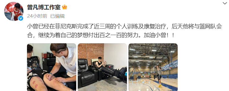 据曾凡博工作室最新透露,曾凡博已在菲尼克斯完成了近三周的个人训练及康复治疗,很快便会前往布鲁克林与篮网会合,即将正式开启冲击NBA的旅程。